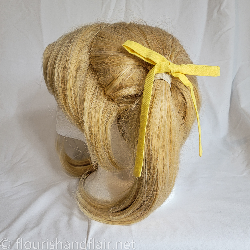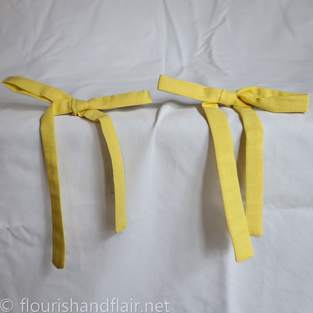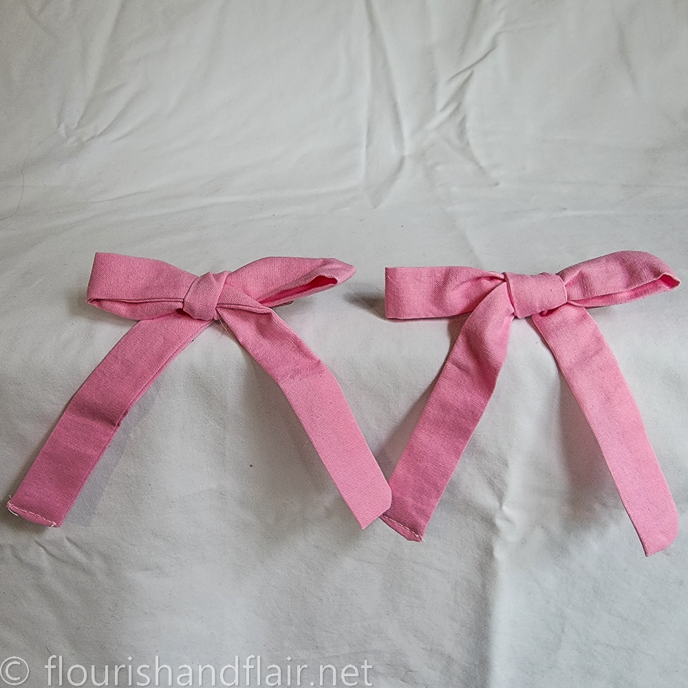 Finish off any outfit or cosplay with a set of ribbon-style tied hair bows. Made of 100% cotton (prewashed, allergen-free), these ribbon-style bows are not bias tape! They are slightly wider and made of stronger washable cotton that will hold shape better and longer, with hand-sewn ends and tacking to keep the bows stable. Simple hair clips keep them secured to either a wig or to your own natural hair.