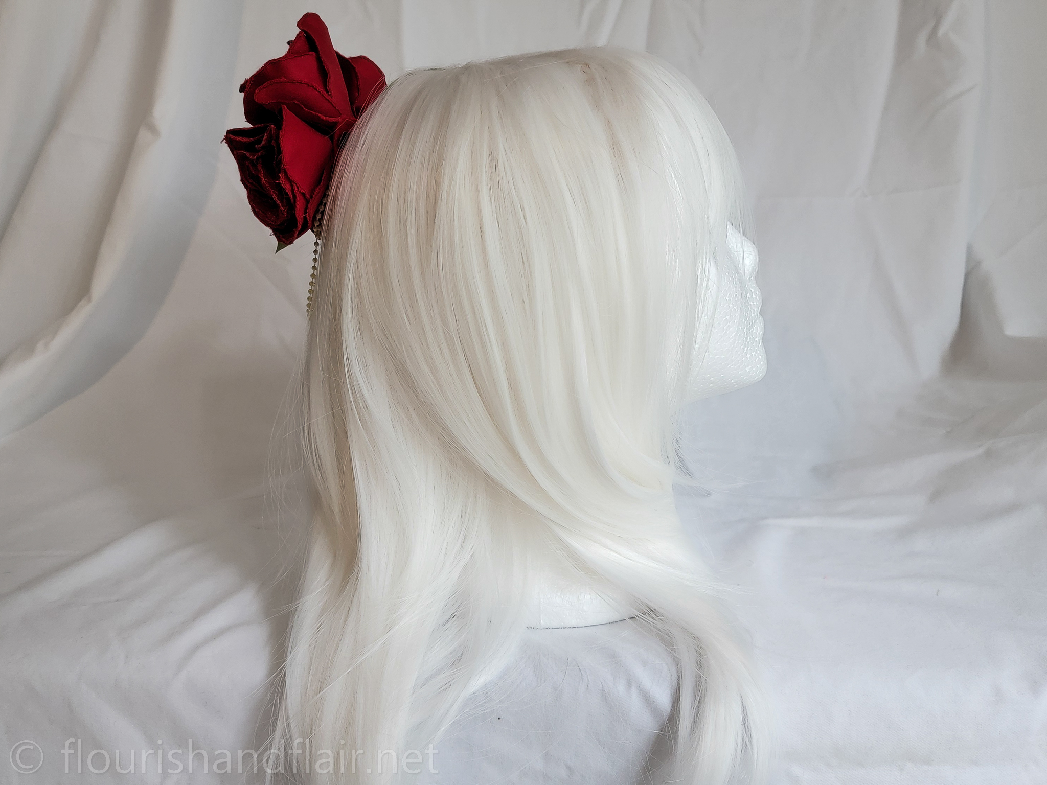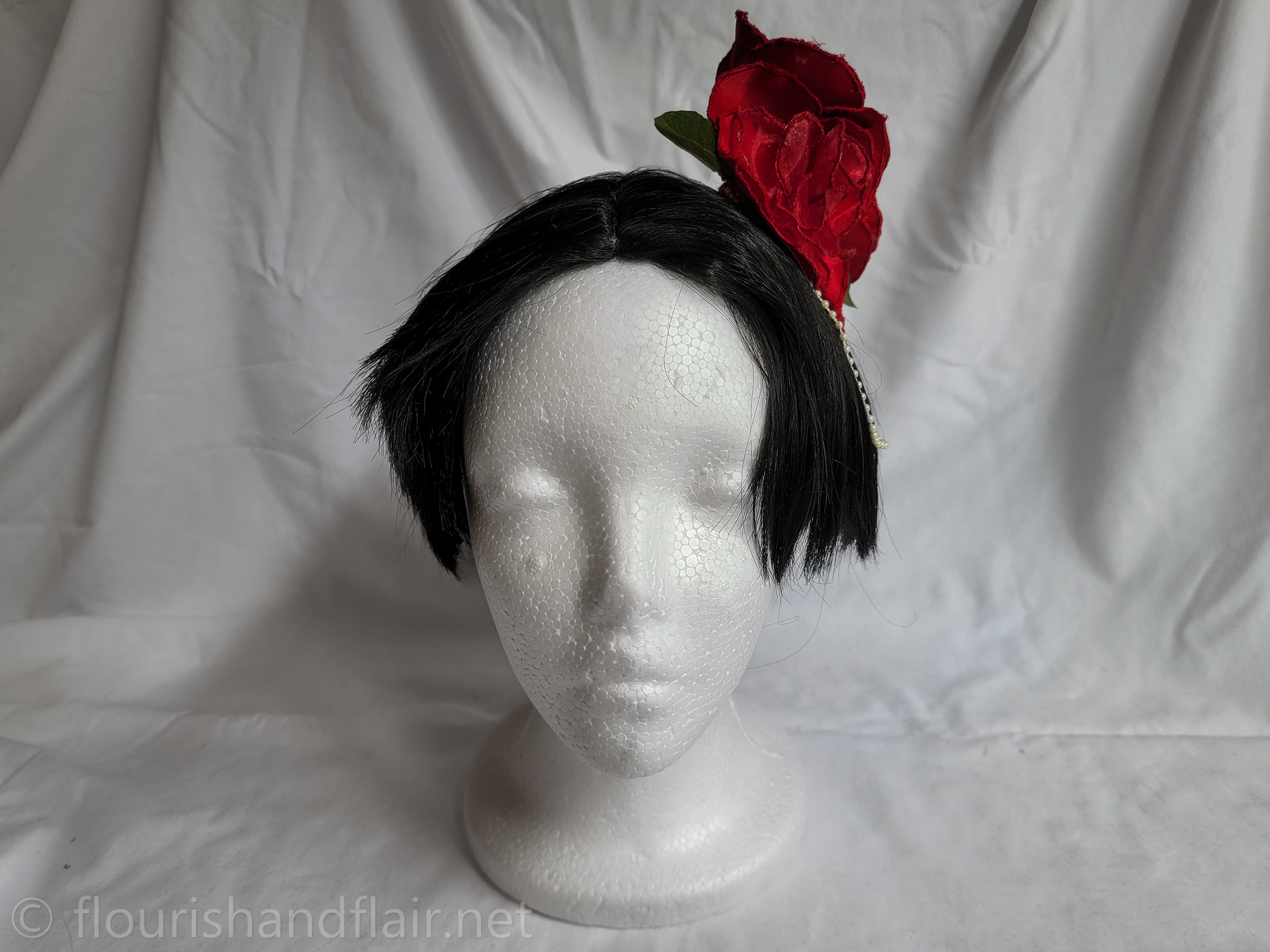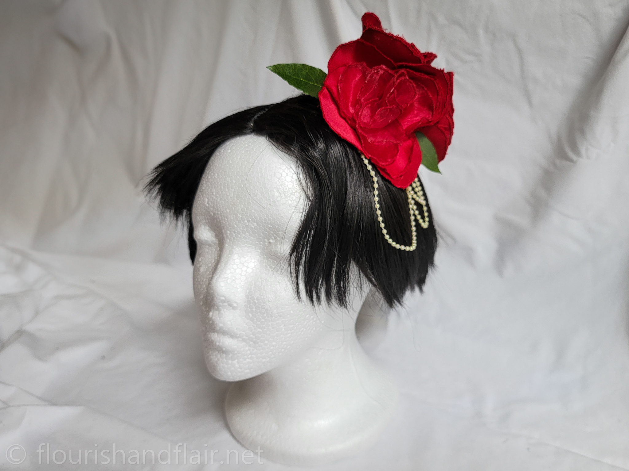 This embroidered rose hair clip features delicate satin outer petals, chiffon inner petals, and gold pearl accents for a dainty, handcrafted touch. A versatile accessory perfect for elevating any hairstyle with timeless elegance.