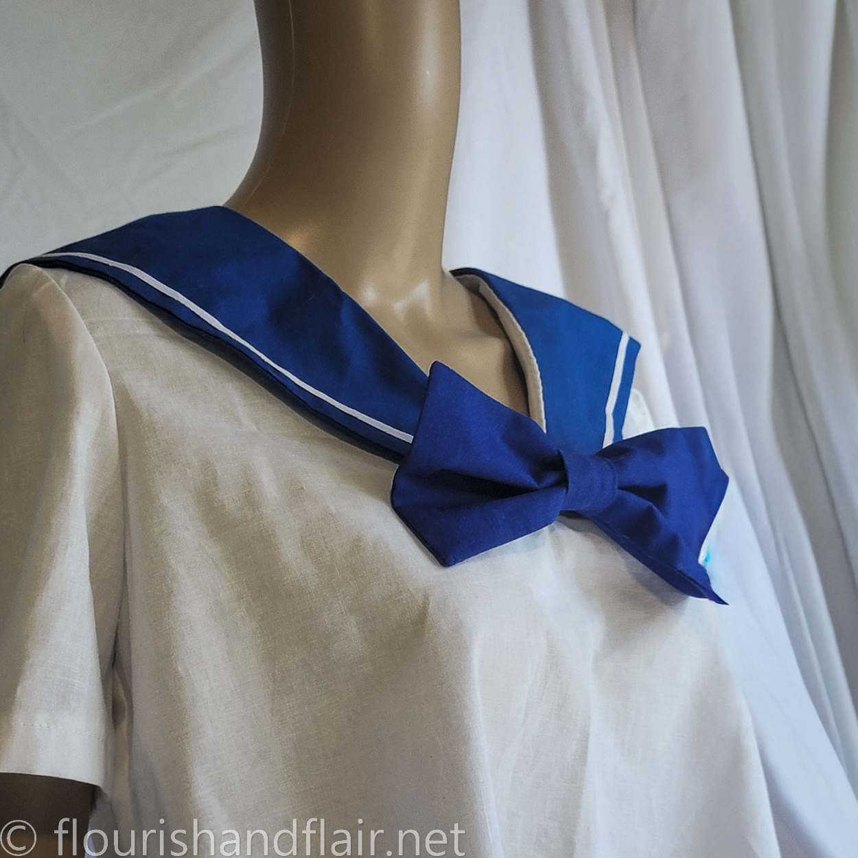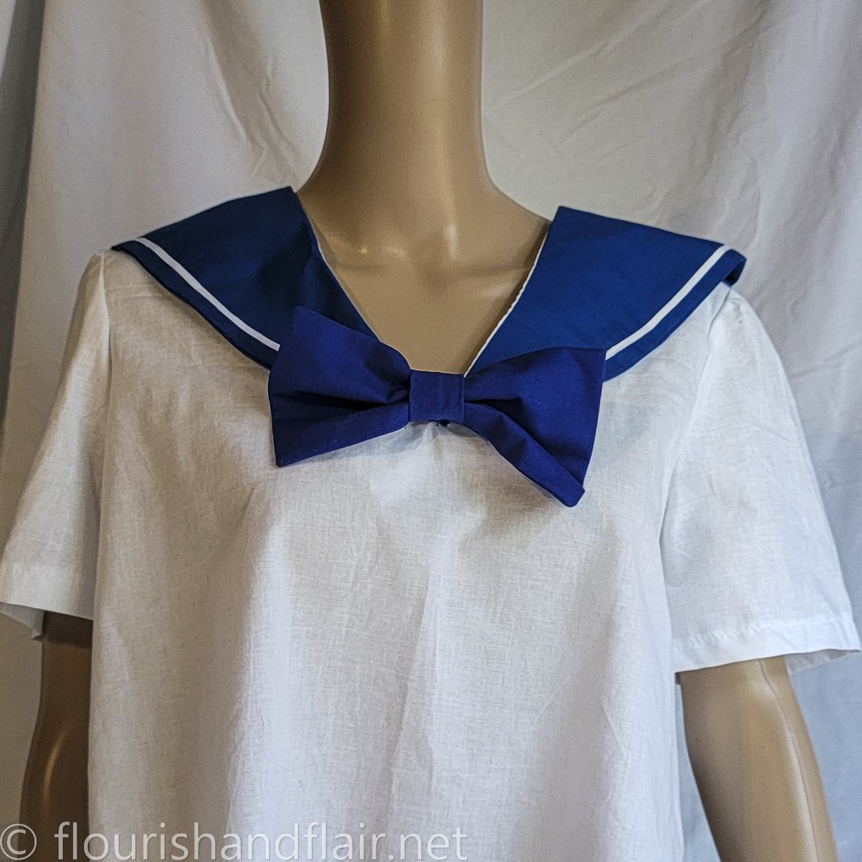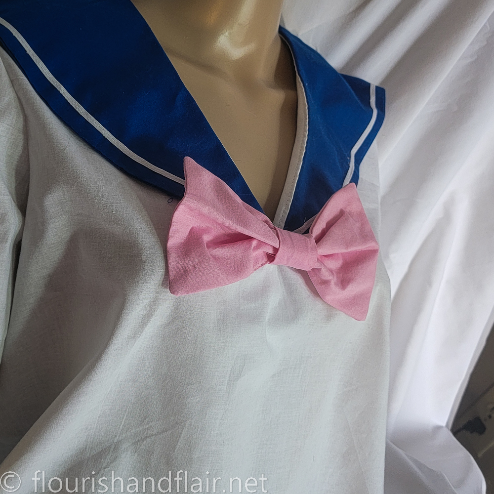 Finish off any school uniform, serafuku, or outfit with a quick pin-on blouse bow. All colors 100% cotton, prewashed, allergen-free, with minimal interfacing for stiffness. Small size bow measures 7" long x 4" wide.