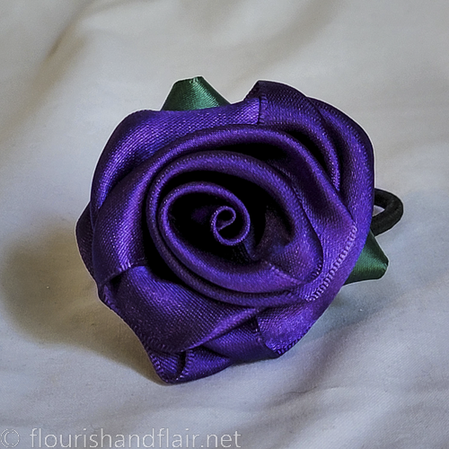 All ribbon roses are hand-made in studio, not pre-made. Sewn instead of glued for more secure long-term hold.